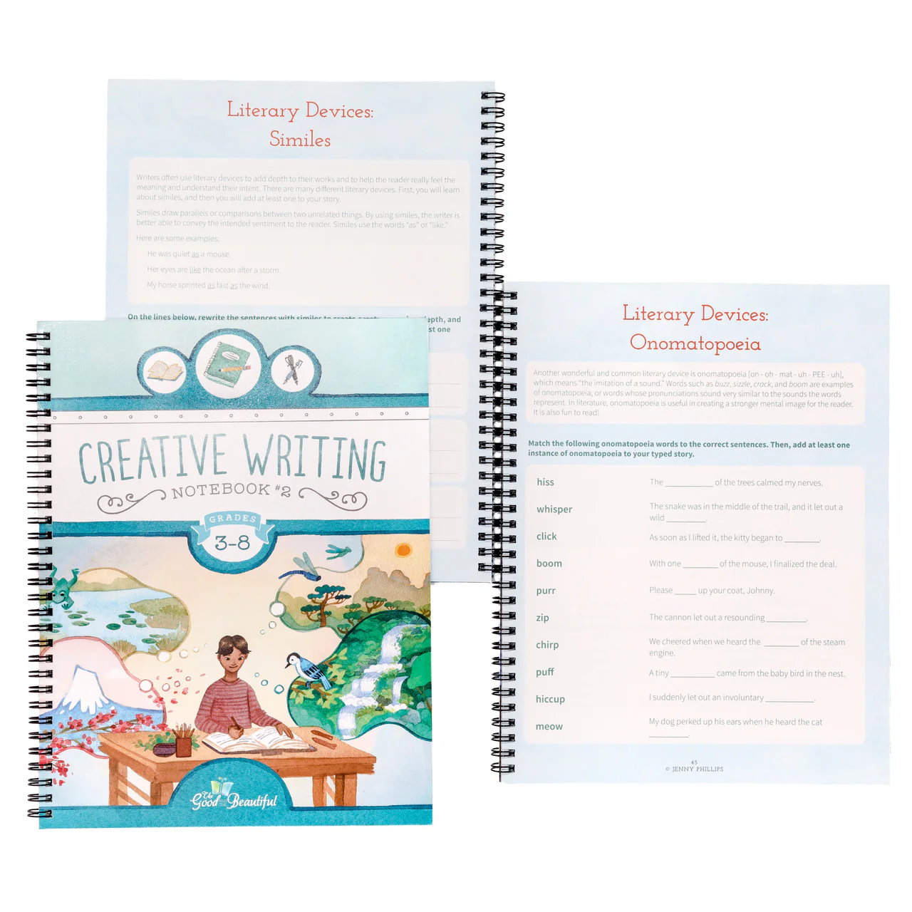 This beautiful notebook provides more practice and joyful, creative exercises for budding writers! Creative Writing Notebook 2 teaches skills such as adding sensory descriptions, generating ideas, using gestures to show emotion, creating engaging characters and plots, writing dialogue, overcoming writer’s block, and much more! The notebook contains three sections: Writing for Fun, Story #1, and Story #2. Designed for children in grades 3–8, this notebook covers both fiction writing and poetry.